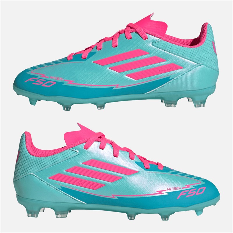 adidas Junior F50 Liga Messi FG/MG fester/mehrfach Boden Fußballschuhe Flash Aqua/Lucid Pink/Lucid Cyan