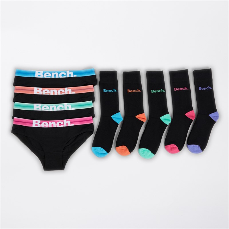 Bench Damen Siffrala Viererpack Slips und Fünferpack Socken Multipack Schwarz